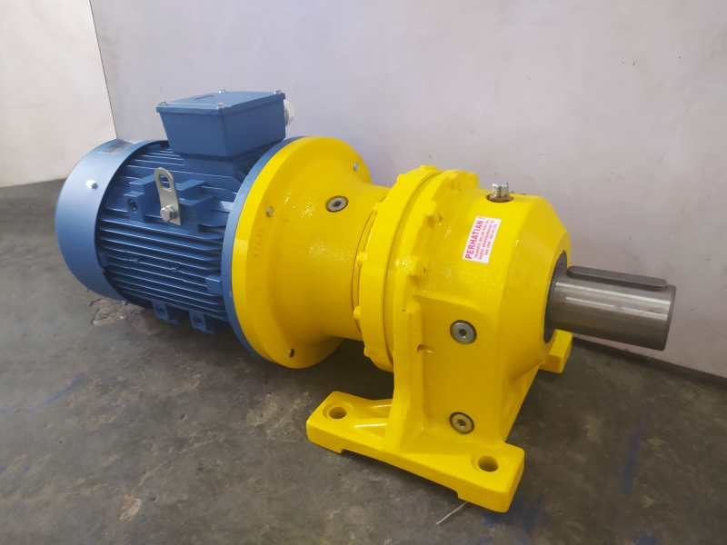 Dinamic Oil Gearbox Type RE 312 PK1 - ME 132 B3 adalah geared motor Foot Mounted dengan Design In-line Planetary gear dengan konfigurasi menggunakan Output solid shaft dan dilengkapi IEC Flange adaptor yang cocok untuk Electromotor dengan frame size 132 dalam standard IEC. Konstruksi Gearbox menggunakan reduksi 3 tingkat Planetary gear serta dilengkapi dengan 1 set Steel Frame / Kaki yang dapat dilepas (Tidak Senyawa). Gearbox ini biasanya akan di rangkai / Couple Dengan electromotor 3 phase 4 pole (1.450 Rpm) Flange mounted tanpa membutuhkan tambahan aksesories transmisi berupa coupling, pulley maupun sprocket.